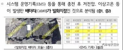 三星SDI電池也遇到了問題,根據(jù)檢查小組分析EMS的歷史記錄,存在部分電芯的電壓吵過了電池企業(yè)的建議的上限充電電壓(4.15V)30mV,并且連續(xù)壓差超過400mV。此外,去年6月24日的EMS記錄電芯在SOC為0%時放電約3分鐘的情況。