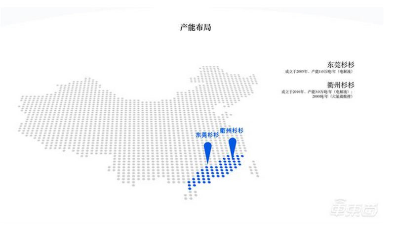 在電解液方面,杉杉股份官網(wǎng)顯示,目前其自有產(chǎn)能4萬噸/年,分別在東莞與衢州建有生產(chǎn)基地。平安證券研究報告中指出,這一產(chǎn)能水平在電解液產(chǎn)業(yè)排名國內(nèi)第五,同樣屬于第一陣營。