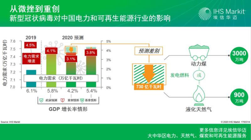 在這種假設情形下,中國2020年的GDP增速預計會降至4.2%,而電力需求增長將僅為3.1%,這比我們在新冠病毒爆發(fā)前預測的水平整整低了1個百分點。