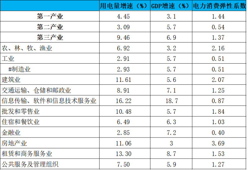 具體到各行業(yè)用電及GDP增速,請看下表: