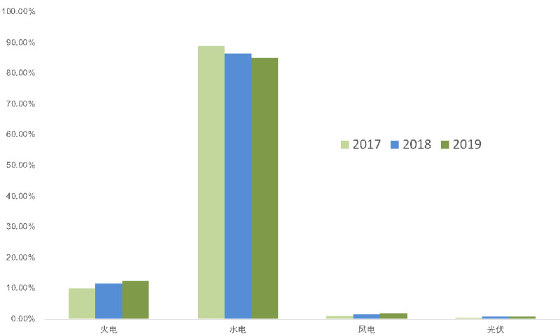 圖7 四川2017、2018、2019年發(fā)電量占比