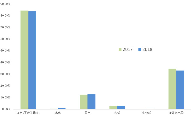 據(jù)國(guó)家統(tǒng)計(jì)局?jǐn)?shù)據(jù),內(nèi)蒙古2017年和2018年全省電量平衡構(gòu)成如圖5所示。分析發(fā)現(xiàn),內(nèi)蒙古電源結(jié)構(gòu)以火力發(fā)電為主,電力外送量占總發(fā)電量比重超過(guò)30%。2018年,內(nèi)蒙古全社會(huì)用電量增速達(dá)到15.95%,凈外送電量同比降低8%,可再生能源電力增速達(dá)到17%。但是內(nèi)蒙古非水可再生消納量并沒(méi)有達(dá)到要求??梢?jiàn),隨著產(chǎn)業(yè)轉(zhuǎn)移的加速和西部地區(qū)終端用能電氣化率的提高,廉價(jià)電力為本省經(jīng)濟(jì)社會(huì)發(fā)展服務(wù),特別是優(yōu)質(zhì)可再生資源電力服務(wù)本省的訴求正在凸顯,這在可再生能源消納責(zé)任機(jī)制啟動(dòng)后將愈加明顯。