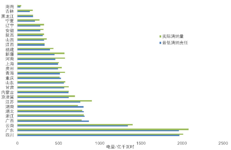 圖1 2018年可再生能源消納量與最低消納責(zé)任