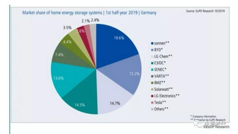那么請?jiān)倏纯礆W洲第一大市場,德國,2019年上半年,家用儲能競爭格局: