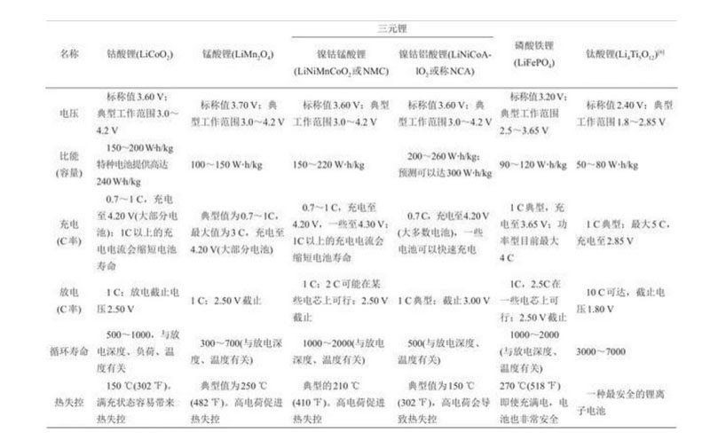 表1常用鋰離子電池技術(shù)對(duì)比Table 1Common lithium-ion battery technology comparison