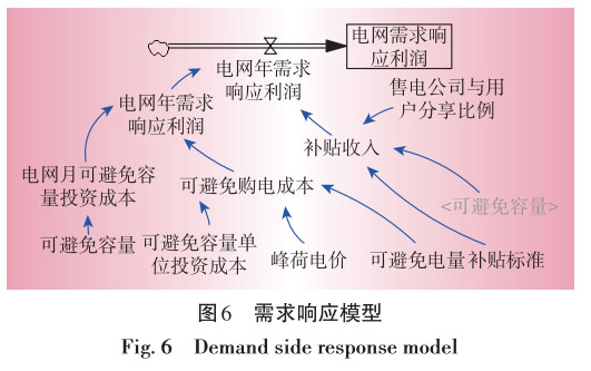 該模型是從售電對(duì)電網(wǎng)業(yè)務(wù)運(yùn)營(yíng)角度出發(fā)構(gòu) 建的。售電業(yè)務(wù)放開后,無論是增值服務(wù)角度還是 控制用戶偏差角度(現(xiàn)貨市場(chǎng)就是價(jià)格響應(yīng)或者風(fēng) 險(xiǎn)規(guī)避),都有較強(qiáng)的動(dòng)力進(jìn)行需求響應(yīng)管理。對(duì) 電網(wǎng)而言,模型的基本邏輯是:一方面需求響應(yīng)可 以減少容量投資的成本,另一方面可以減少高峰購(gòu) 電的成本,還可以享受一定的補(bǔ)貼(市場(chǎng)化情況下 可能取消),需求響應(yīng)模型如圖6。