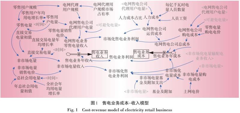當(dāng)前中國(guó)正在全面深化電力體制改革,售電業(yè)務(wù)將大規(guī)模放開,在給社會(huì)帶來紅利的同時(shí),對(duì)電網(wǎng)企業(yè)生產(chǎn)經(jīng)營(yíng)產(chǎn)生巨大影響。引入系統(tǒng)動(dòng)力學(xué)模型開展量化研究,按照業(yè)務(wù)流程,分別建立了售電業(yè)務(wù)成本-收入模型、輸配電業(yè)務(wù)收入-成本模型、電力增值服務(wù)收入-成本模型、電網(wǎng)人員流失模型、現(xiàn)金流模型、需求響應(yīng)模型、售電及相關(guān)業(yè)務(wù)利潤(rùn)模型等7個(gè)分模型。釆用某省電力市場(chǎng)2018年年報(bào)的相關(guān)數(shù)據(jù),分市場(chǎng)化電量增速變化、電網(wǎng)售電公司代理電量變化和售電購(gòu)銷價(jià)差變化3種情景,對(duì)電網(wǎng)相關(guān)指標(biāo)的影響進(jìn)行了仿真分析,為電網(wǎng)企業(yè)開展電力體制改革評(píng)估工作提供參考。