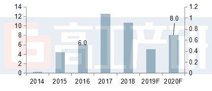 2014-2020年新能源物流車產(chǎn)量及預(yù)測(cè)(萬輛)
