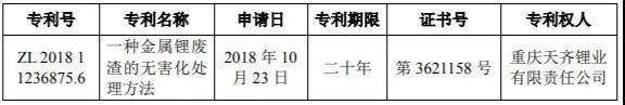 3月5日晚,天齊鋰業(yè)發(fā)布公告稱,近日,中華人民共和國國家知識(shí)產(chǎn)權(quán)局授予公司控股子公司重慶天齊鋰業(yè)有限責(zé)任公司1項(xiàng)發(fā)明專利,專利名稱為一種金屬鋰廢渣的無害化處理方法。
