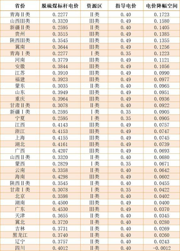 從電價降幅空間來看,青海、新疆二類、山西三類、貴州、陜西、冀南、河南、安徽等地降價幅度均可超過0.1元/千瓦時,相對競價優(yōu)勢更為明顯一些。但以四川、冀北、湖南、廣東以及東三省為代表的地區(qū),電價降幅空間僅有2-3分/千瓦時左右。具體數(shù)據(jù)見下表: