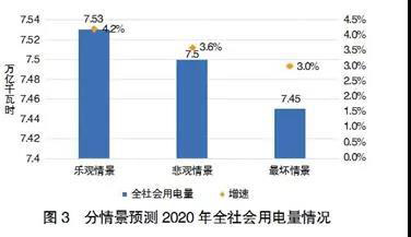 樂(lè)觀情景:疫情防控效果較好,疫情得到有效控制,并在2月中旬達(dá)到峰值,3~4月結(jié)束,僅影響第一季度用電量和全年三產(chǎn)用電。在疫情結(jié)束后,各企業(yè)積極復(fù)工。疫情過(guò)后政府出臺(tái)強(qiáng)力基建投資拉動(dòng)經(jīng)濟(jì),高耗能行業(yè)用電量將彌補(bǔ)疫情期間三產(chǎn)用電下行,對(duì)全年用電量影響不大。預(yù)測(cè)此類情景,2020年全年全社會(huì)用電量在7.53萬(wàn)億千瓦時(shí),增速為4.2%。