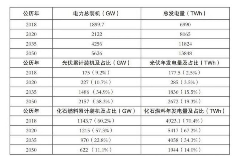 化石燃料裝機(jī)占比需要從現(xiàn)在的60.2%下降到2050年的11.1%,發(fā)電量占比需要從現(xiàn)在的70.4%下降到14.0%;而光伏裝機(jī)占比需要從現(xiàn)在的9.2%上升到2050年的38.3%,發(fā)電量占比從現(xiàn)在的2.5%上升到19.3%。光伏裝機(jī)到2050年將超過20億千瓦。