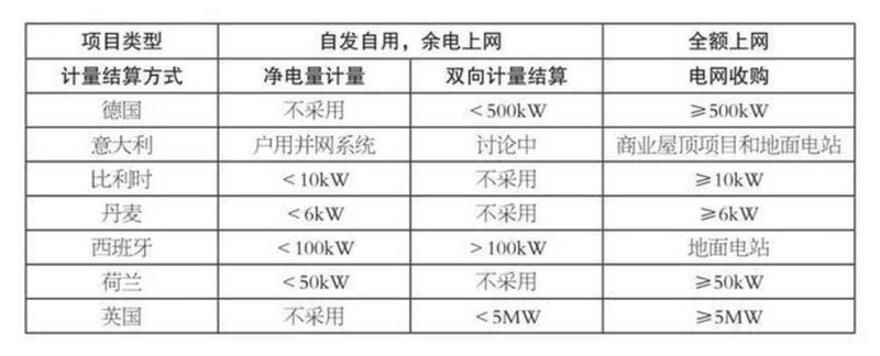 表3 歐洲各國采用凈電量計(jì)量的情況