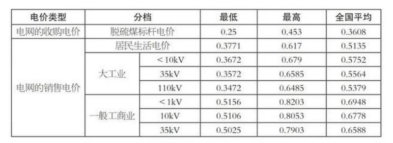 表2 電網(wǎng)的收購電價(jià)和銷售電價(jià)比較(單位:元/千瓦時(shí))
