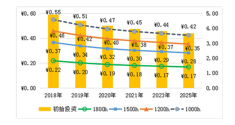 圖1 光伏電站不同等效利用小時(shí)數(shù)LCOE測(cè)算(單位:元/千瓦時(shí))