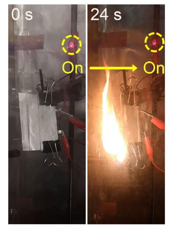 最終測試結果非常喜人,著火后,這種固態(tài)電池不僅沒有爆炸,甚至還在火焰下為LED燈持續(xù)供電了一段時間。