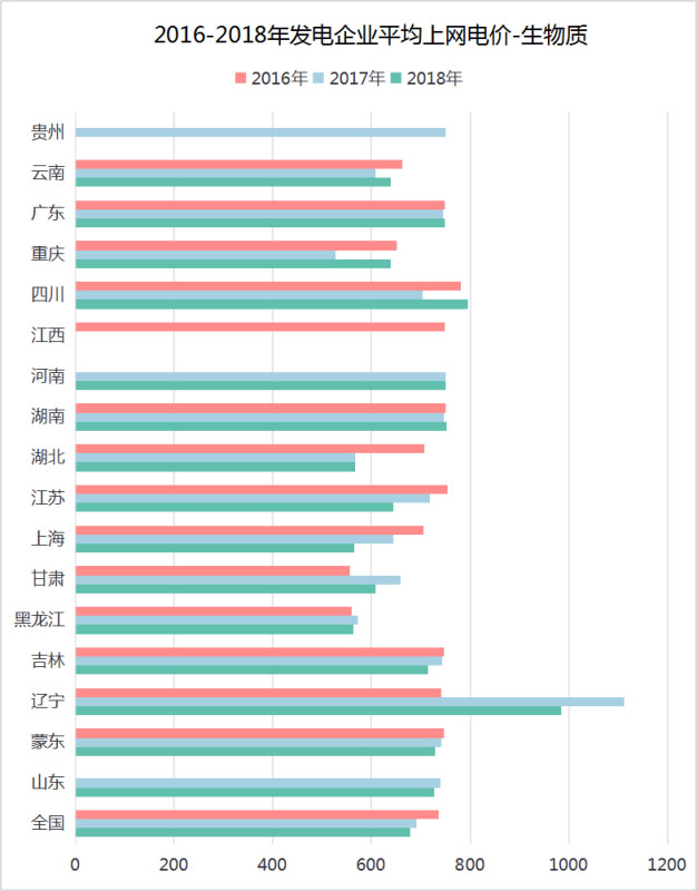 如圖10所示,遼寧生物質(zhì)電價遠超全國其他省區(qū),2017年較2016年價格漲幅顯著,近30%,2018年較2017年有所下降。