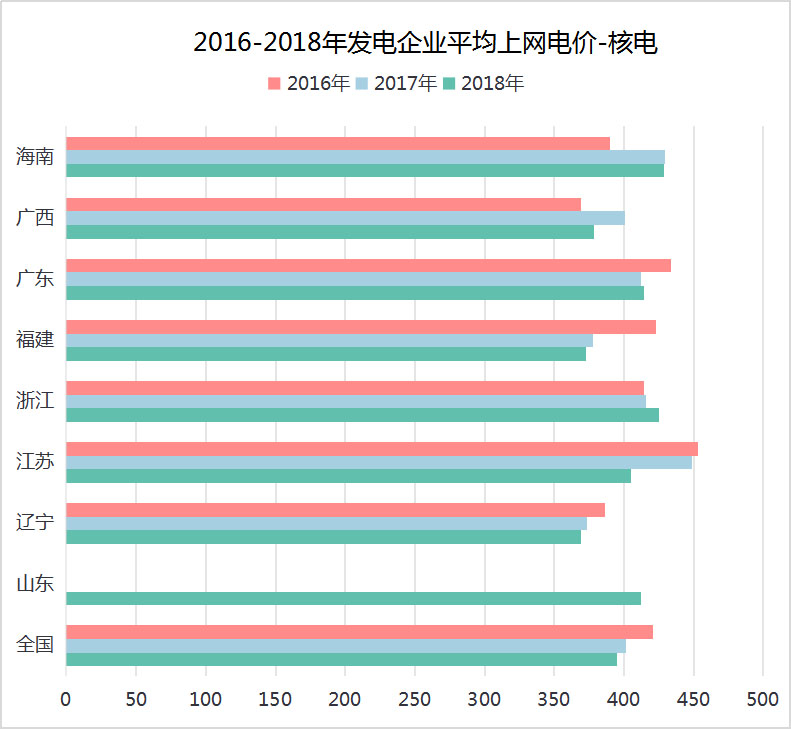 圖8 2016-2018年發(fā)電企業(yè)平均上網(wǎng)電價-核電