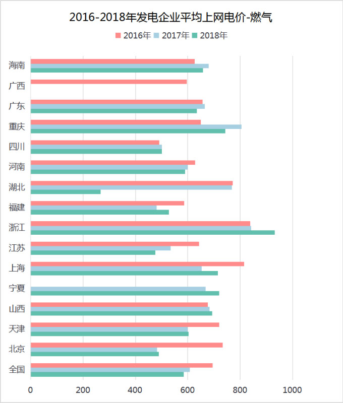 如圖5所示,全國燃氣平均上網(wǎng)電價在2016年到2018年間連續(xù)兩年下降,但浙江連續(xù)兩年逆勢上漲。