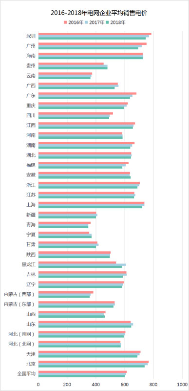 圖3 2016-2018電網(wǎng)企業(yè)平均銷售電價