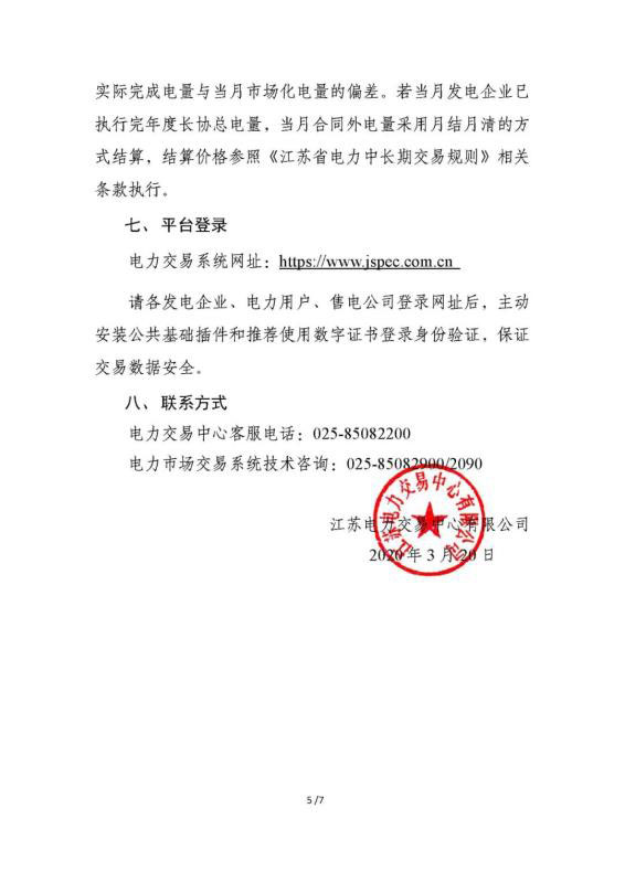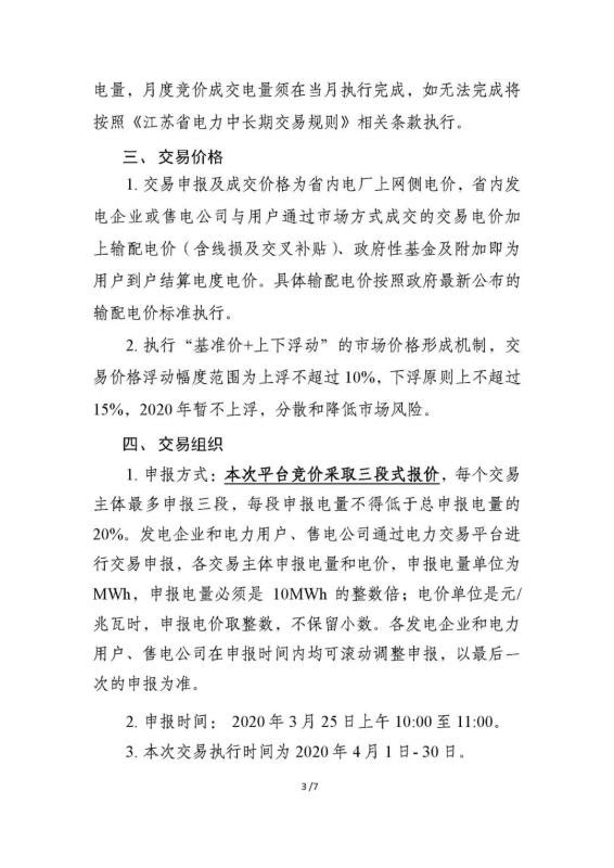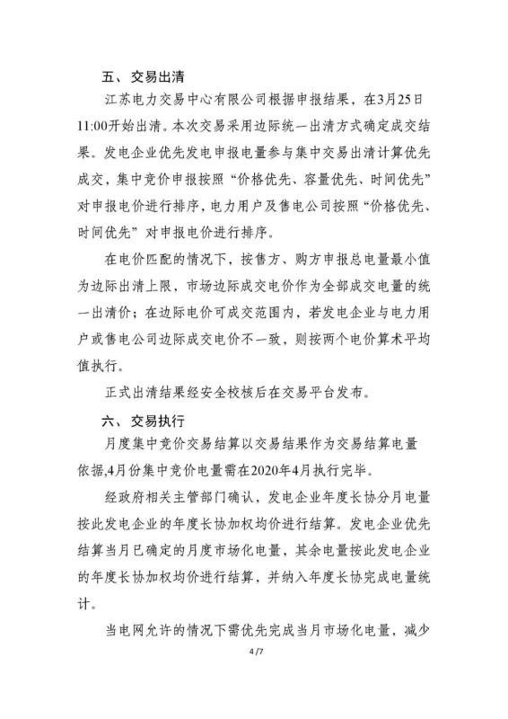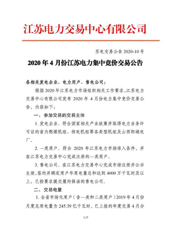 2020年4月份江蘇電力集中競(jìng)價(jià)交易公告