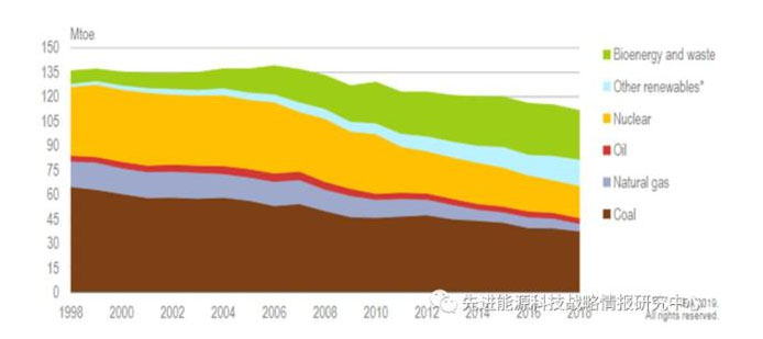 圖3 1998-2018年德國能源生產情況(單位:百萬噸油當量)