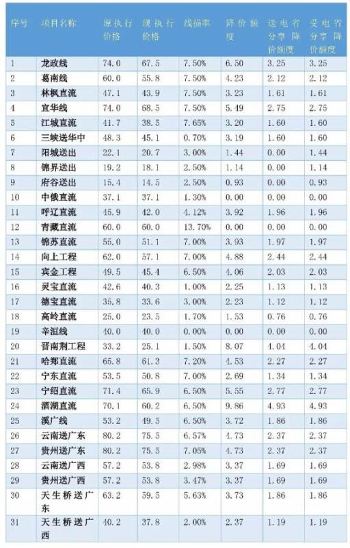 在今年4月份國家出臺政策降低跨省跨區(qū)專項(xiàng)工程輸電價(jià)格,跨省跨區(qū)價(jià)格平均下降3.55厘/度,降幅約6.9%。