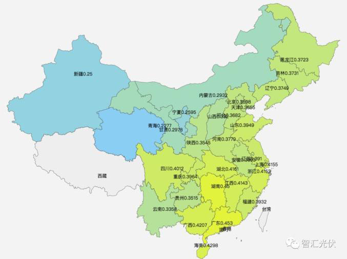 2019年9月26日,李克強(qiáng)總理主持召開國務(wù)院常務(wù)會議,會議決定:從明年1月1日起,取消煤電價(jià)格聯(lián)動機(jī)制,將現(xiàn)行標(biāo)桿上網(wǎng)電價(jià)機(jī)制,改 為“基準(zhǔn)價(jià)+上下浮動”的市場化機(jī)制。各省的煤電基準(zhǔn)價(jià)如下圖所示。