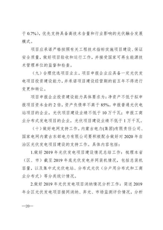 2020年內(nèi)蒙古自治區(qū)光伏發(fā)電發(fā)展明確了二個(gè)方面的工作要求。