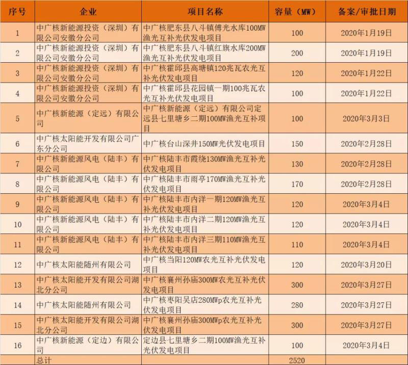 另外,2020年中廣核在光伏領(lǐng)域的發(fā)力程度也值得注意。根據(jù)光伏們統(tǒng)計(jì)的2020年光伏項(xiàng)目備案信息顯示,截至到3月27日,中廣核(包括中廣核太陽能和中廣核新能源)已在全國(guó)各省備案了2520MW光伏項(xiàng)目。