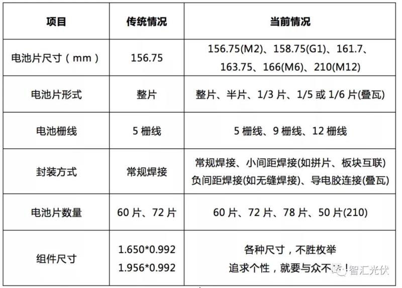 傳統(tǒng)組件電池片尺寸、形式、封裝方式都比較單一,因此無論哪家企業(yè)的組件,基本都是兩種標準尺寸;