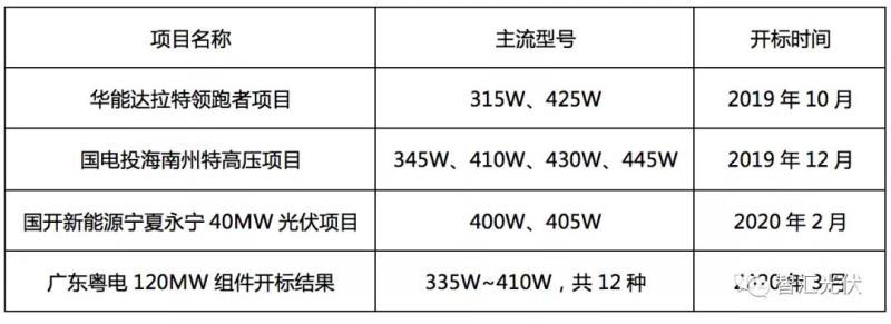 而在近期一些項目的開標文件中,組件型號更是五花八門。整理了近期幾個較大的組件招標,如下表所示。