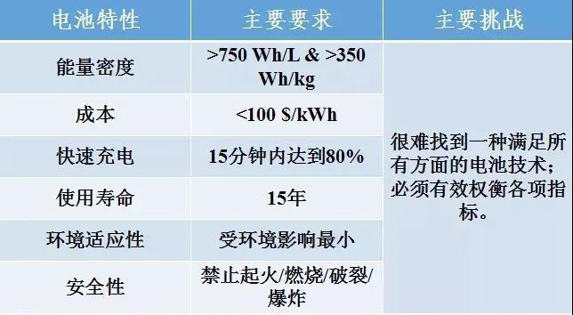 圖1 電動汽車電池的要求和挑戰(zhàn)