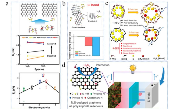 圖5 雜原子摻雜缺陷在鋰硫電池電極材料中的應(yīng)用