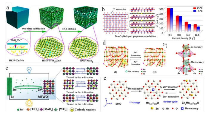 圖4 陽離子缺陷在金屬離子電池電極材料中的應(yīng)用