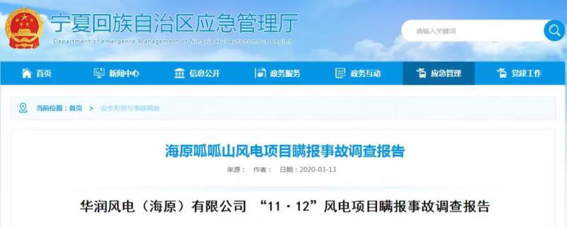 2019年11月12日16時(shí)許,華潤(rùn)風(fēng)電(海原)有限公司海原呱呱山200MW風(fēng)電項(xiàng)目在建工地發(fā)生一起較大事故,造成5人死亡。事故發(fā)生后,事故責(zé)任單位未向當(dāng)?shù)卣坝嘘P(guān)部門(mén)報(bào)告情況,刻意隱瞞事故真相,后經(jīng)群眾舉報(bào)、有關(guān)部門(mén)多次核查,查實(shí)了其瞞報(bào)事故的行為。