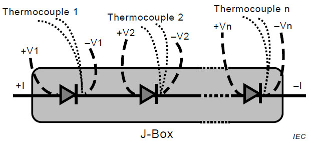 標(biāo)準(zhǔn)IEC 62979提供了一種測試方法來評估接線盒內(nèi)的旁路二極管是否容易發(fā)生熱逃逸現(xiàn)象,同時也從側(cè)面對接線盒的散熱能力提出了更高要求,以確保旁路二極管在從正向偏壓轉(zhuǎn)變成反向偏壓的過程中不會發(fā)生熱擊穿。