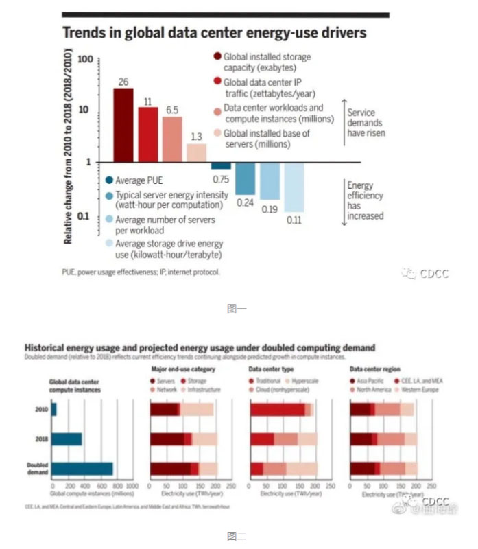 自 2010 年以來,數(shù)據(jù)中心格局發(fā)生了巨大變化。到 2018 年,全球數(shù)據(jù)中心工作負載和計算實例增加了六倍多,而數(shù)據(jù)中心互聯(lián)網(wǎng)協(xié)議(IP)流量增加了十倍以上。數(shù)據(jù)中心的存儲容量也迅速增長,在同一時間段內(nèi)估計增長了 25 倍。分析師之間存在一種分析趨勢,即使用這種服務(wù)需求的趨勢來簡單地推斷出自下而上的能源價值,從而導(dǎo)致對當前和未來的全球數(shù)據(jù)中心能源使用情況的預(yù)測不可靠。例如,他們可以根據(jù)服務(wù)需求指標的增長率(例如,2010 年至 2020 年全球 IP 流量的增長)將以前的自下而上的值(例如,2010年的數(shù)據(jù)中心能源使用總量)擴大到得出對未來能源使用的估計(例如,2020 年數(shù)據(jù)中心的能源使用總量)。
