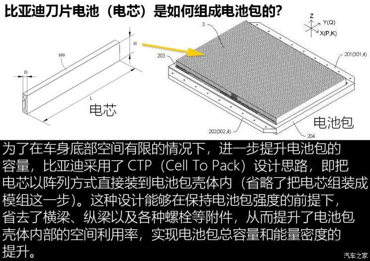 比亞迪通過CTP設(shè)計把電池包殼體內(nèi)部的空間利用率由傳統(tǒng)設(shè)計方式的40-50%提升至60-80%。設(shè)計的更新?lián)Q代帶來的直接好處就是在采用原有磷酸鐵鋰電池技術(shù)的前提下較大地提升純電動車的續(xù)航里程。上面對刀片電池進(jìn)行了簡單的科普,更詳細(xì)的技術(shù)解析可參看下面這篇文章的相關(guān)介紹。