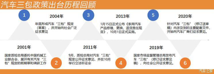 我國《家用汽車產品修理、更換、退貨責任規(guī)定》(以下簡稱《汽車三包規(guī)定》)的制定啟動于2001年3月。當時的主管部門,原國家質檢總局委托中國標準化研究院、中國消費者協(xié)會等單位參與,于2004年12月第一次面向全國公開征求《汽車三包規(guī)定》的意見。