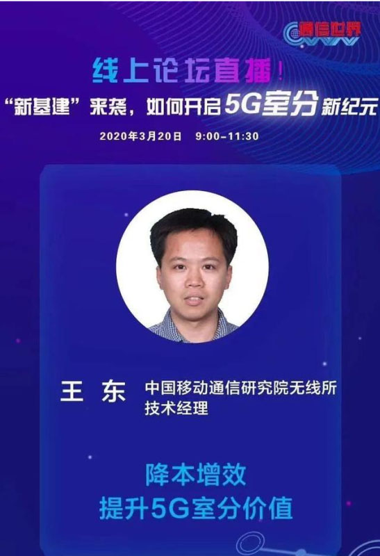 3月20日,通信世界全媒體特策劃5G室分專題線上研討,邀請運(yùn)營商、設(shè)備商、服務(wù)提供商等,從技術(shù)、網(wǎng)絡(luò)建設(shè)等角度進(jìn)行深入討論。在會上,中國移動(dòng)通信研究院無線所技術(shù)經(jīng)理王東介紹了5G室分“三高一不夠”的挑戰(zhàn),并基于目前5G室內(nèi)覆蓋的問題和挑戰(zhàn),提出3個(gè)發(fā)展方向以開展5G室內(nèi)覆蓋建設(shè)。