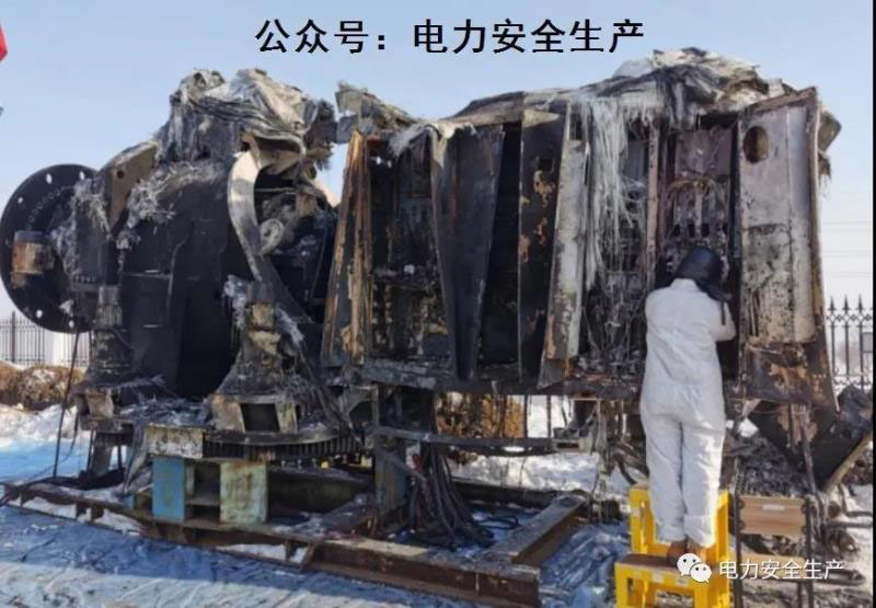 經(jīng)現(xiàn)場勘察,風(fēng)電機(jī)組機(jī)艙燒損,輪轂及三只葉片根部過火,箱變高壓側(cè)C相熔斷器爆熔噴出,箱變門輕微變形。