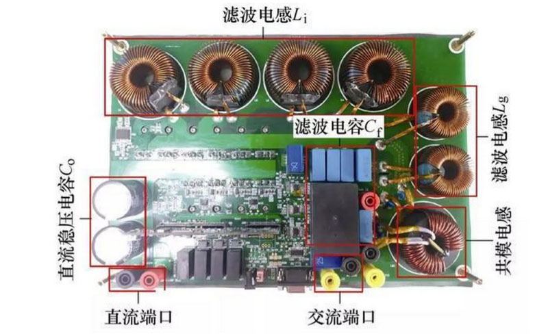 研究者進(jìn)行了濾波器參數(shù)設(shè)計,實現(xiàn)了電感量最小化與良好的濾波效果。樣機(jī)功率密度約達(dá)22W/in3,具有較高的功率密度,且滿載時輸出電流THD為3.37%,20次以上諧波幾乎被濾除。