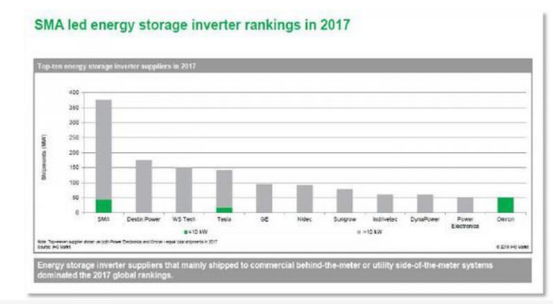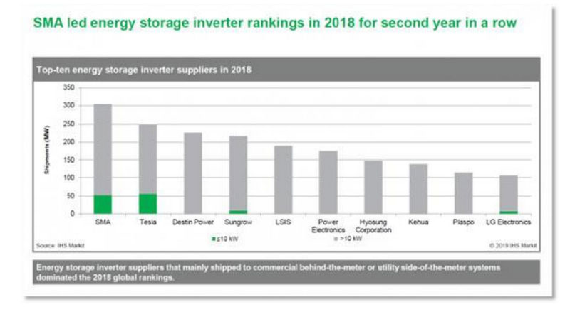 IHS Markit于2019年8月發(fā)布《2019全球儲能逆變器(PCS)分析報告》,在報告中公布了其對儲能逆變器行業(yè)的年度調查結果和預測,SMA憑借出色的、覆蓋全球的儲能逆變器出貨量及裝機量,繼續(xù)蟬聯全球儲能逆變器行業(yè)第一品牌。