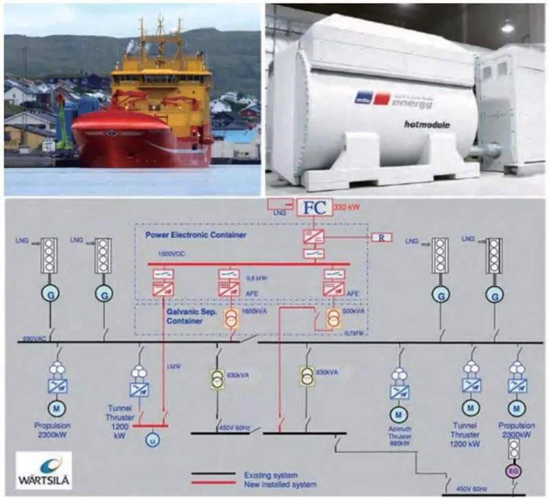“VikingLady”號,MTU公司燃料電池組和電氣單線圖