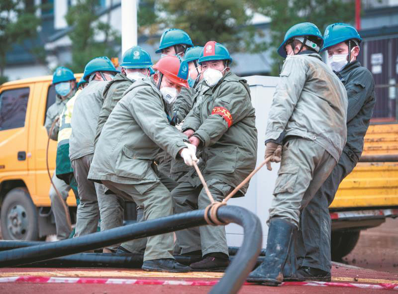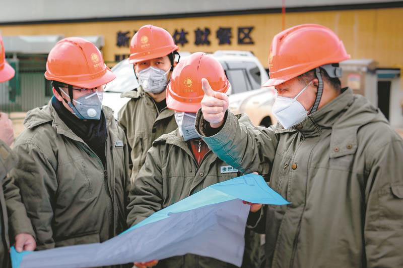 供電員工在雷神山醫(yī)院建設(shè)工地現(xiàn)場(chǎng)討論施工方案。左衛(wèi)兵 攝