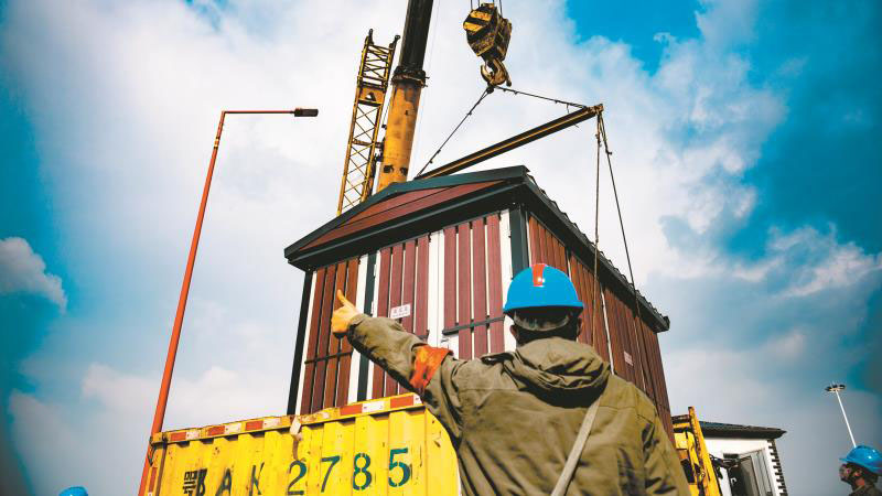 1月29日,供電員工進(jìn)行環(huán)網(wǎng)柜的吊裝和落位。 左衛(wèi)兵 攝