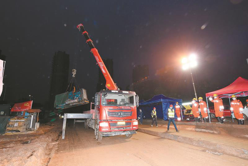 從下午直到深夜23時(shí)49分,隨著第24號(hào)變壓器送電完成,驗(yàn)收人員如釋重負(fù)地露出了笑容:“送電成功了!”此時(shí)的火神山,在移動(dòng)照明燈塔的照射下燈火通明,不遠(yuǎn)處,箱式板房已初具規(guī)模,大型機(jī)械仍在不停運(yùn)轉(zhuǎn)著。