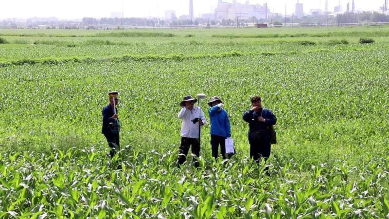 炎炎夏日,該院設(shè)計人員每日步行十余公里,對吉林經(jīng)開220千伏輸變電工程線路進行現(xiàn)場勘查和交樁。尹航 攝