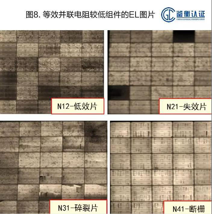 從圖中可以看出,并聯(lián)電阻明顯低于正常水平的組件,均存在明顯的缺陷。